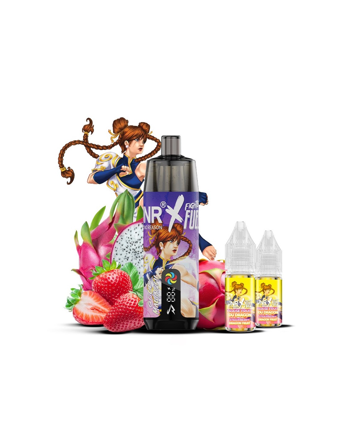 La Gold Mawashi marie la fraise charnue et sucrée au fruit du dragon, connu pour son parfum délicat et sa touche tropicale raffinée. Ensemble, ces deux fruits offrent une vape à la fois douce, fruitée et équilibrée, avec une finale subtilement sucrée qui séduit à chaque tirage.